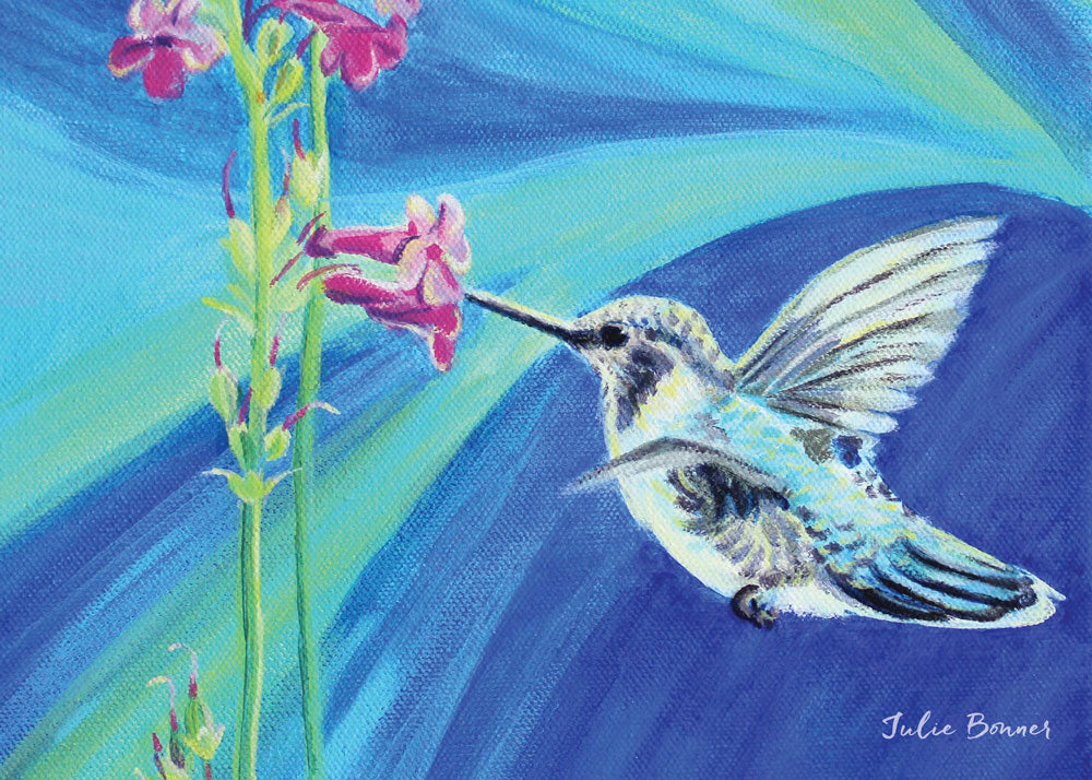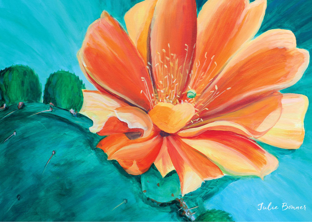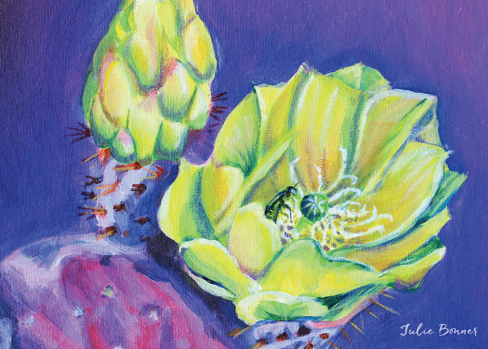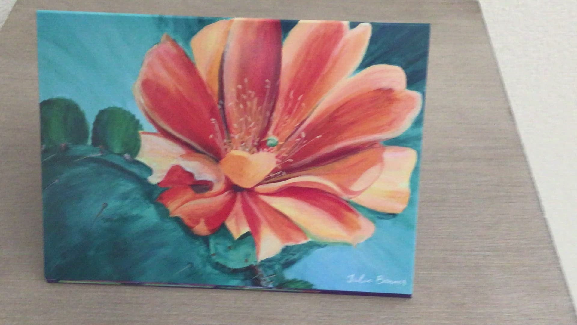 Fresh Flowers Assorted pack includes 5 unique greeting cards featuring prints of “Sonoran Awakening”, “Spring Garden”, “Backyard Bloom”, “Desert Rose”, “Bursting Bloom” all painted by Julie!